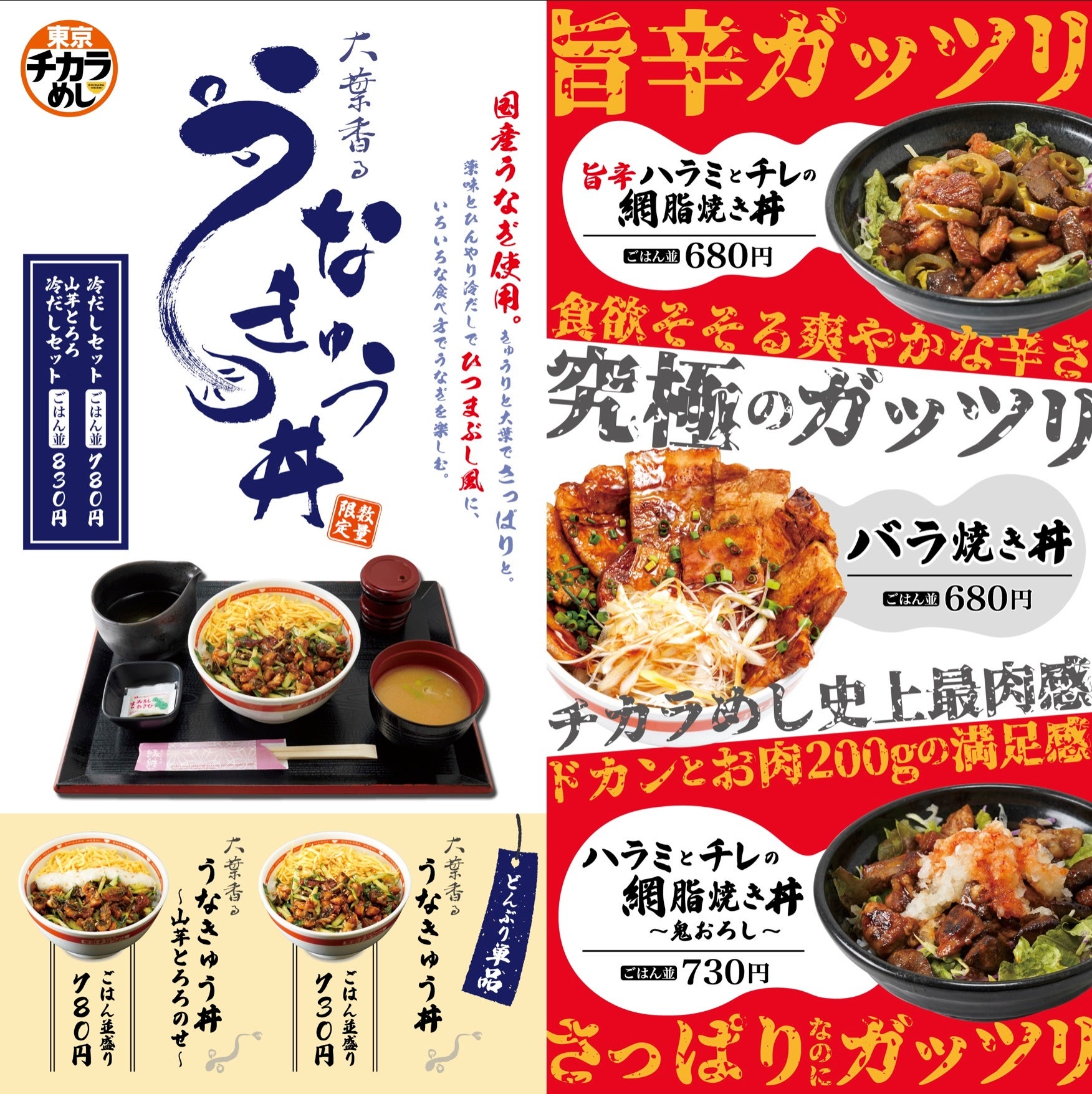 株式会社SANKO MARKETING FOODS(本社:東京都中央区、代表取締役:長澤成博、証券コード:2762、以下「当社」といいます。)は、東京チカラめし新宿西口1号店限定で、7月23日(土)から『ハラミとチレの網脂焼き丼』、『大葉香るうなきゅう丼』などの新メニューの提供を開始いたします。