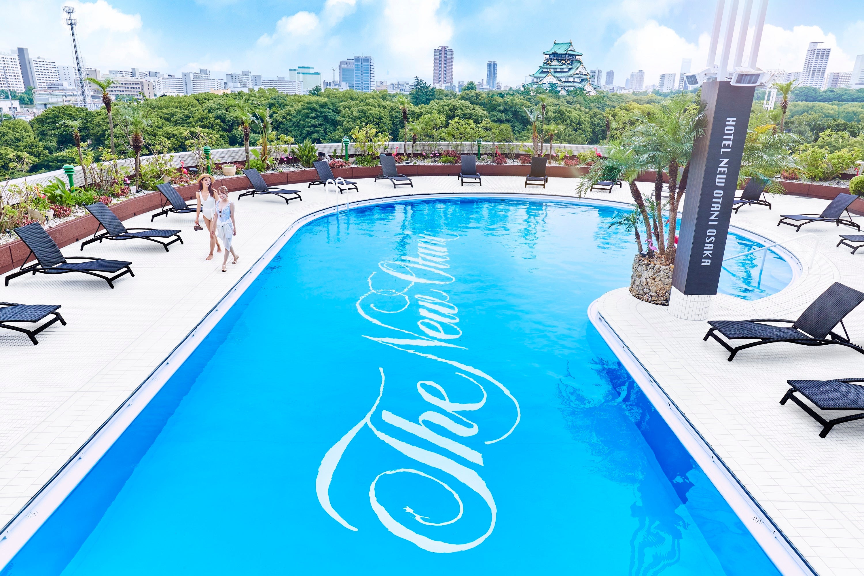 大阪市内に居ながら海外の南国リゾートさながらの圧倒的な開放感を体感できると人気の、ホテルニューオータニ大阪のアウトドアプール。日没までの昼間の時間帯にお愉しみいただける”デイプール”は、大阪城公園の豊かな緑や南国調の植栽が生み出す涼やかな“リゾート”と、大阪ビジネスパークのビル群による“アーバン”が見事に融合した唯一無二のブティックプール。小さなお子さまも一緒にご利用いただけ、ご家族3世代で愉しむサマーレジャーに最適なスポットです。