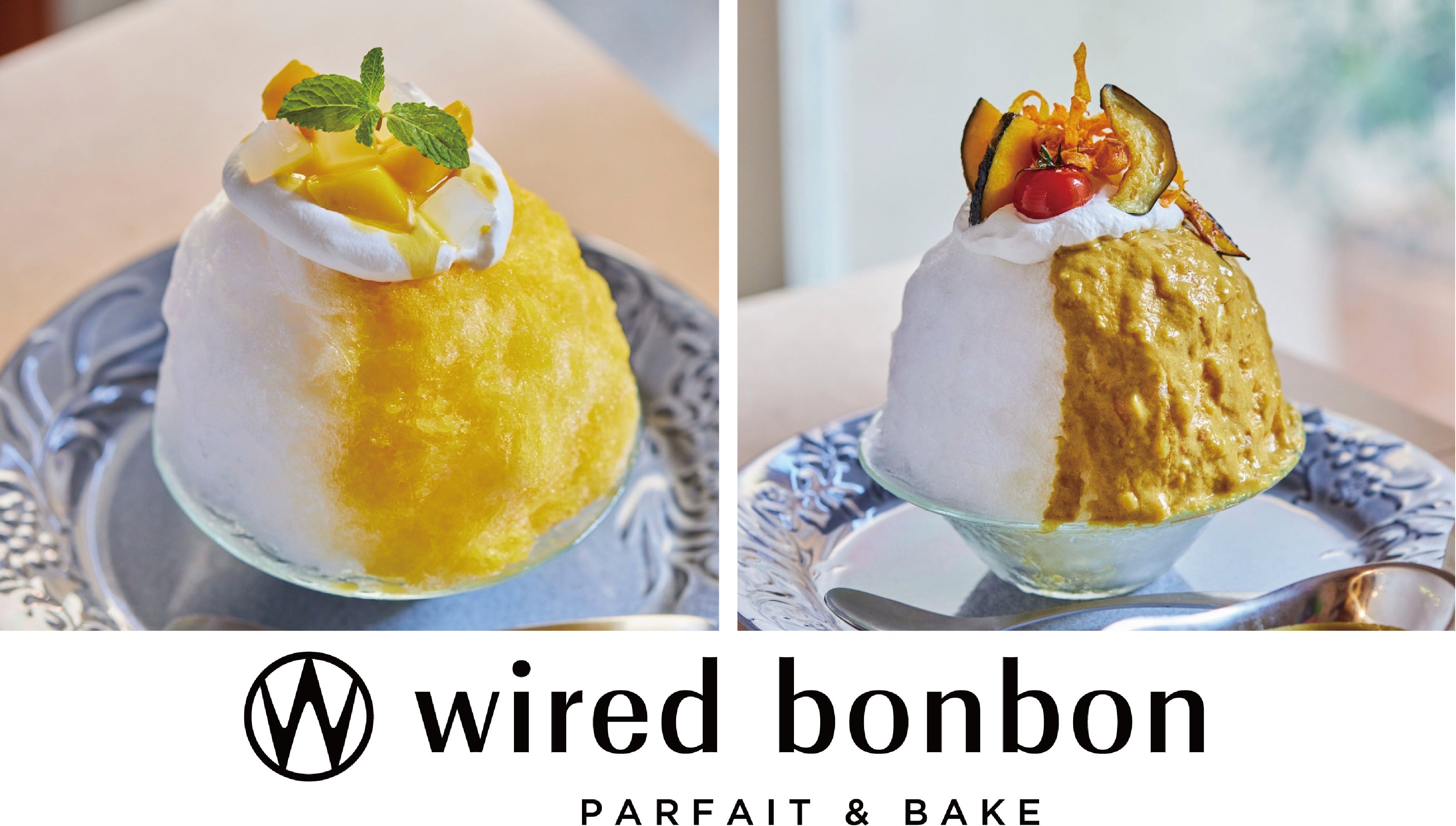 カフェ・カンパニー株式会社(所在地:東京都渋谷区、代表取締役社長:楠本修二郎、以下当社)が運営する「WIRED CAFE」から誕生したスイーツに特化したカフェ「wired bonbon(ワイアード ボンボン)」は、 7月22日(金)の「ナッツの日」と7月25日(月)の「かき氷の日」に向けて、アイス研究家としてメディア出演等も多いシズリーナ荒井さんと、当社のエグゼクティブ・パティシエとしてヴィーガン・スイーツ専門店「hal okada vegan sweets lab」を手がける岡田春生がタッグを組んで監修した「アーモンドミルクのマンゴーレアチーズ風かき氷」「アーモンドミルクのカレーかき氷」を 2022年7月22日(金)より期間限定で販売いたします。