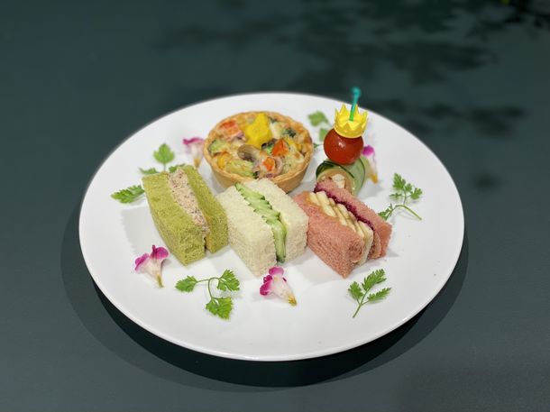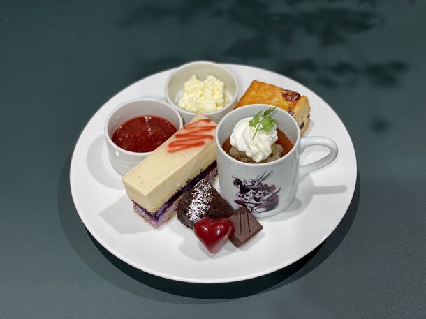 HARNEY & SONS OMOTESANDOでのスペシャル・アフタヌーンティーメニューは、紅茶やハーブティーを使用したオリジナルスウィーツを中心に、数々のセイボリーやストロベリーキウイフルーツティーのノンアルコール・サングリア、そしてお好みのハーニー&サンズ紅茶のセットとなっています。アールグレイとピーチのムースは、このアフタヌーンティーメニューのために有田ポーセリンラボに別注生産していただいたオリジナルカップにてご提供。