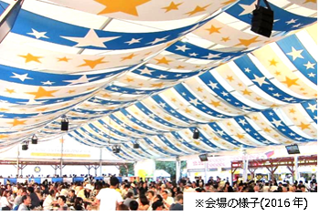 「THE サッポロビヤガーデン」は、日差しの強い日中や雨天時でも快適に過ごしていただける、カラフルな屋根の大型テントが特長です。