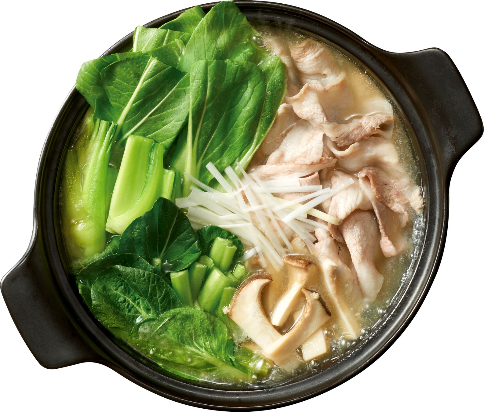 ・おろしにんにくとローストガーリック、2種類のにんにくを効かせた、青菜(小松菜・チンゲン菜)が美味しく食べられる鍋用スープです。