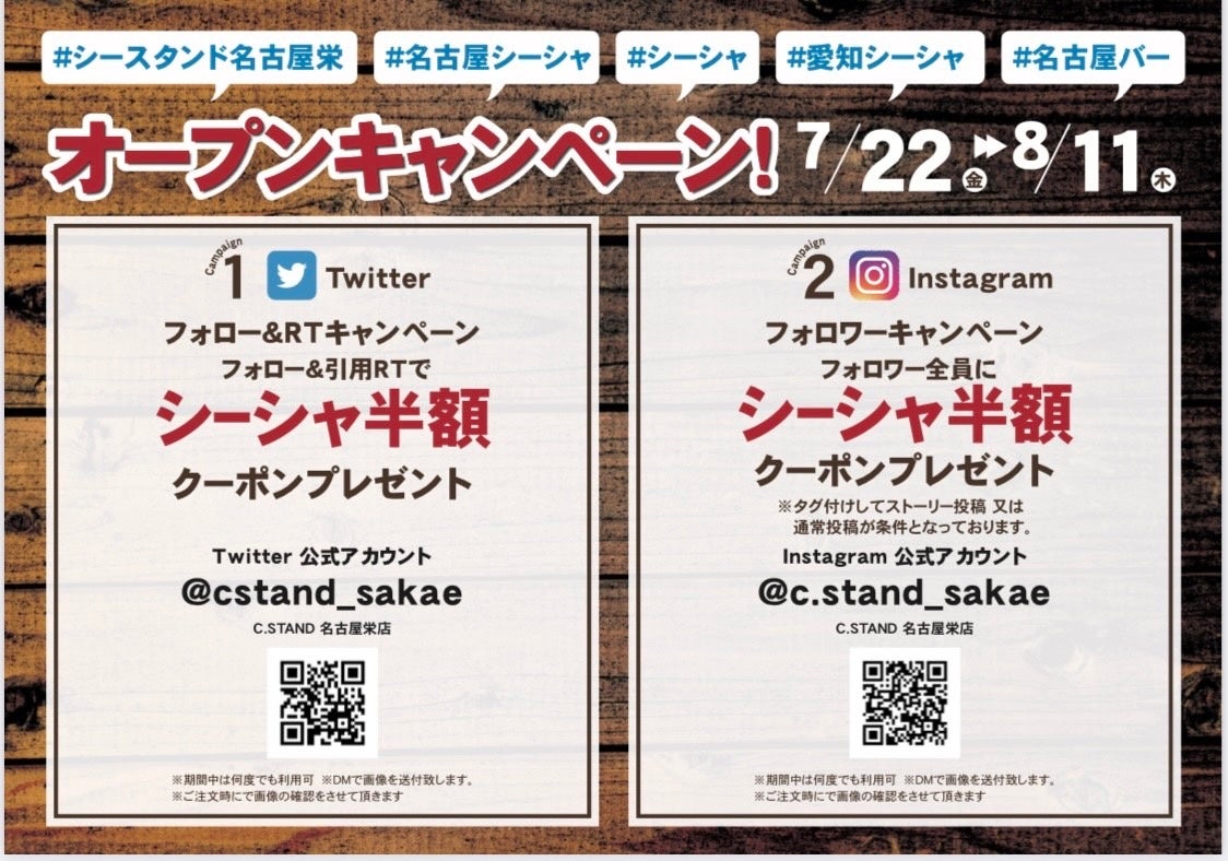 Instagram:フォロワー様全員にシーシャ半額クーポンプレゼント