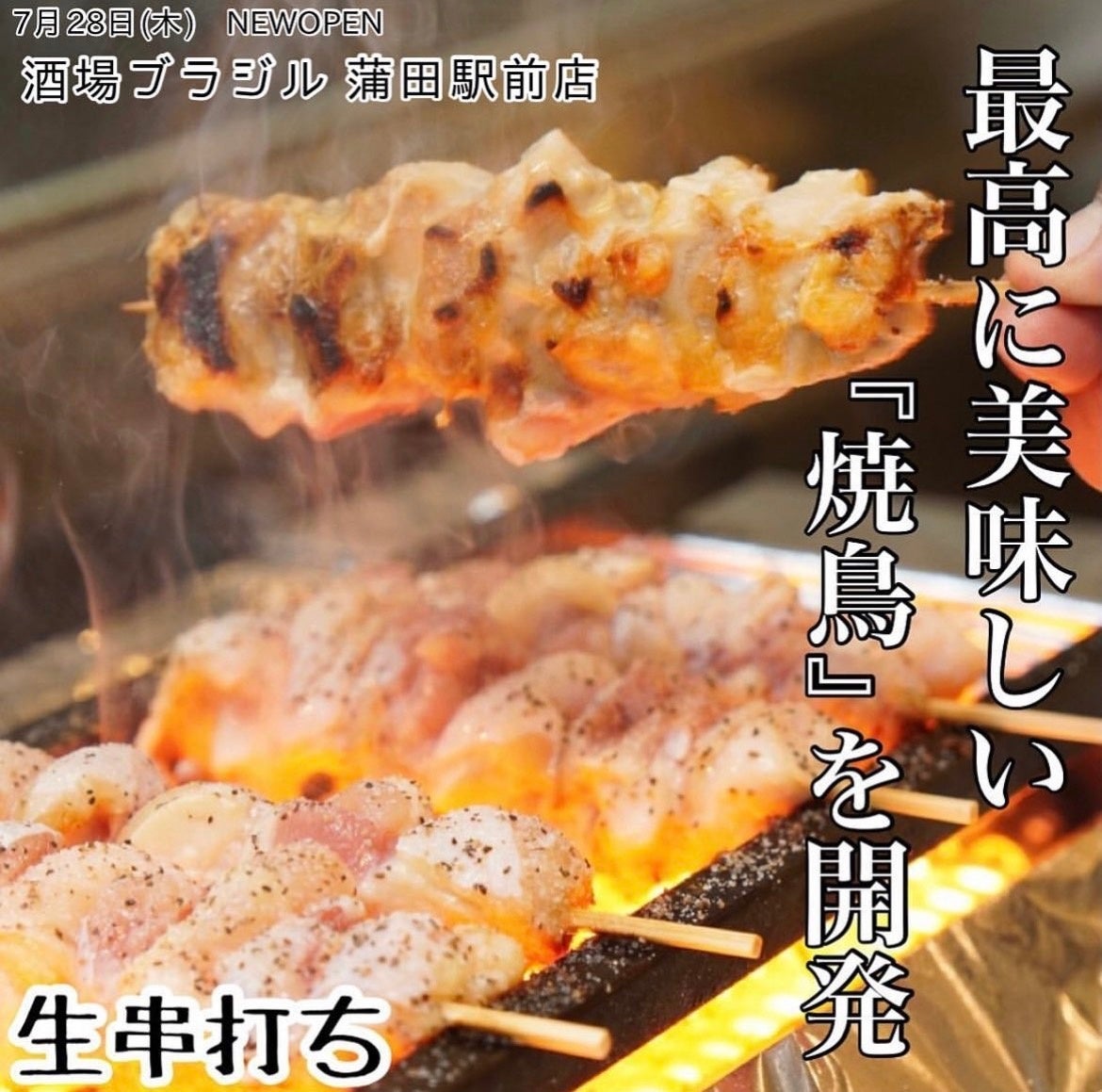 そこに、「佐野塩」と「1000度の火力」で焼き上げる日本初の焼鳥はプリプリジューシーで極上の旨味。厳選したサイドメニュー、本場ブラジルのドリンクなど酒場ブラジルには魅力がいっぱいございます。世界の焼鳥を知り尽くした創業者がお届けします。