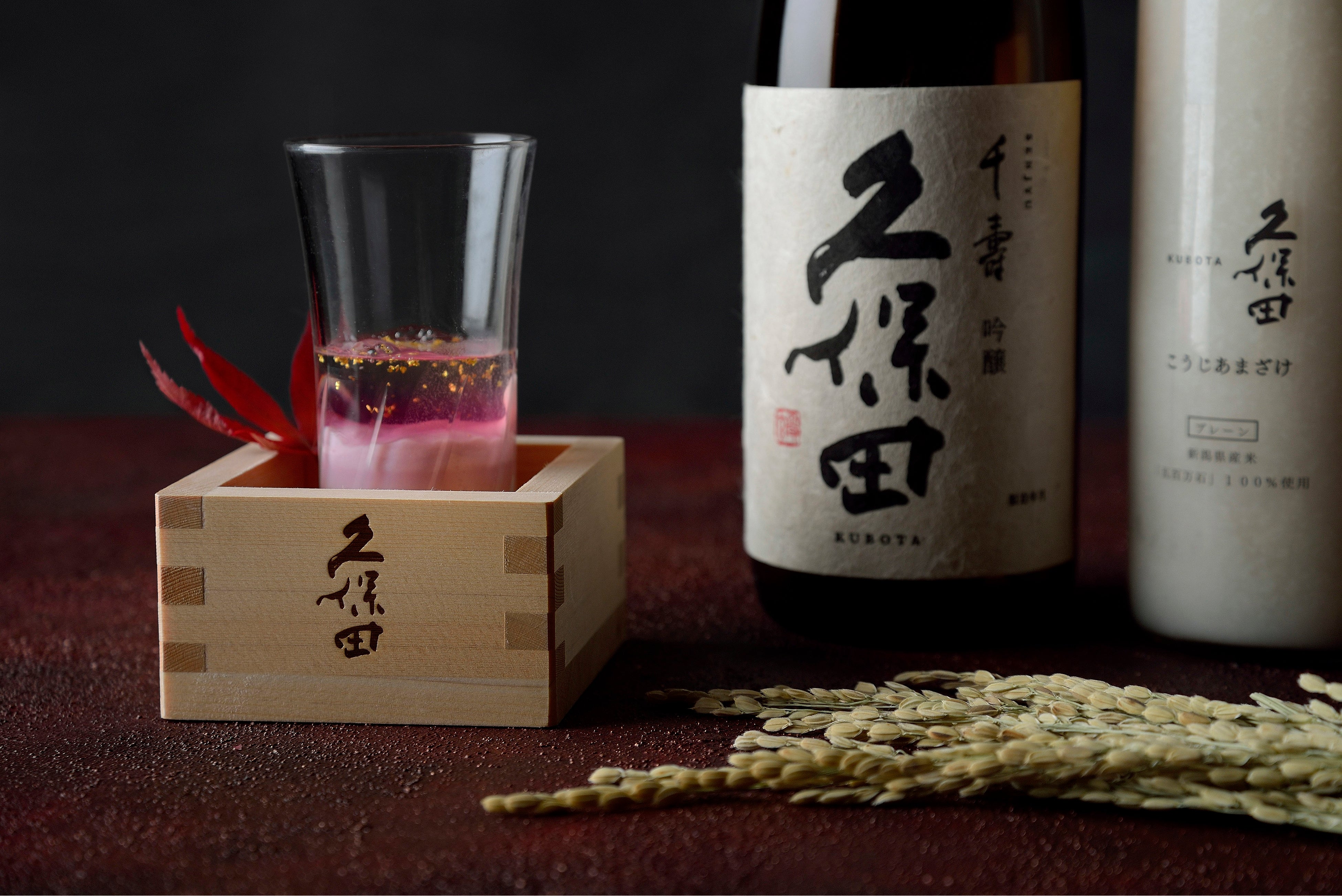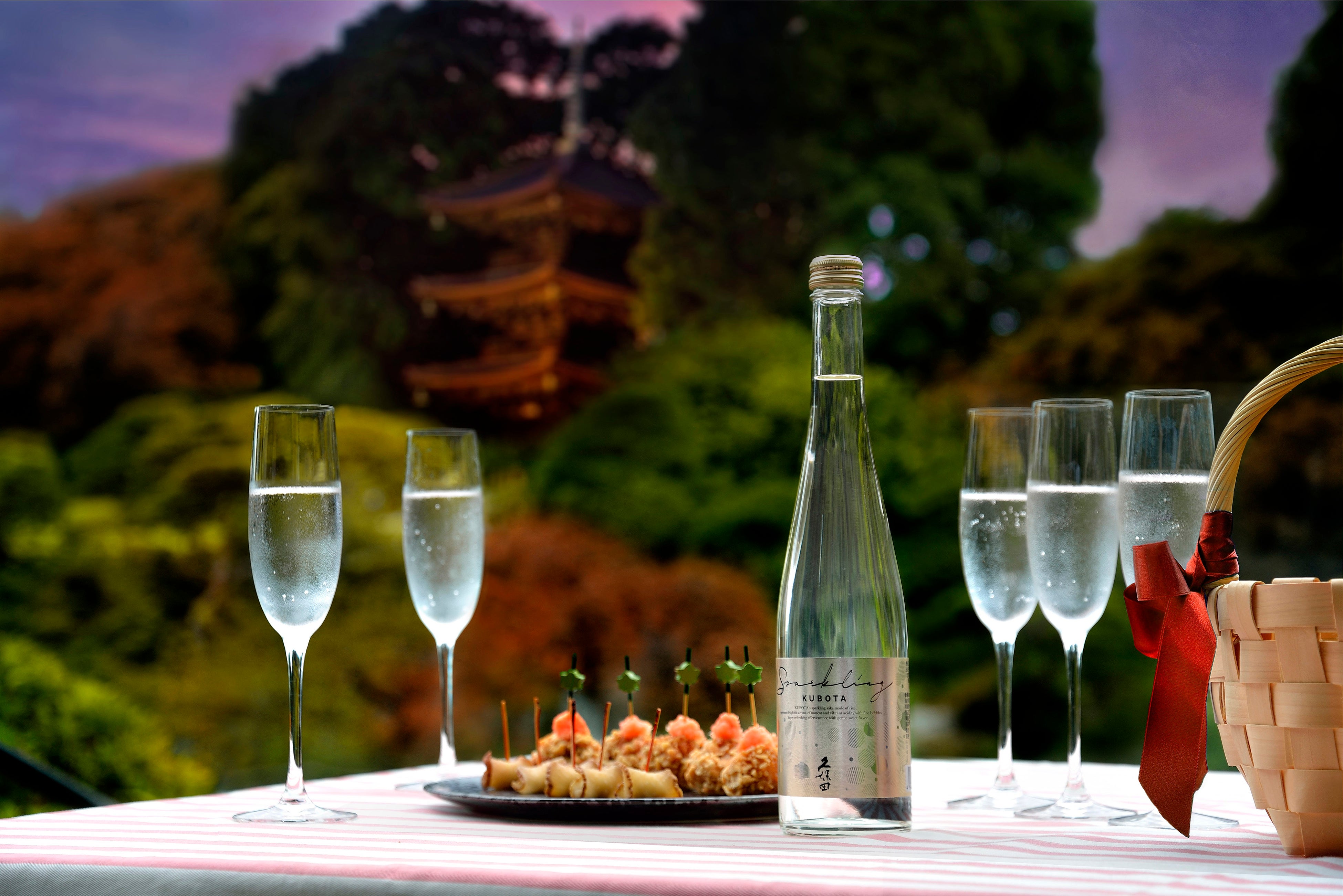 ウエルカムドリンクには『久保田 スパークリング』を、利き酒セットでは『久保田 萬寿』、『久保田 千寿』、『久保田 ゆずリキュール』の3種をご提供。お食事の始まりから終わりまで、日本酒「久保田」を存分にお楽しみください。