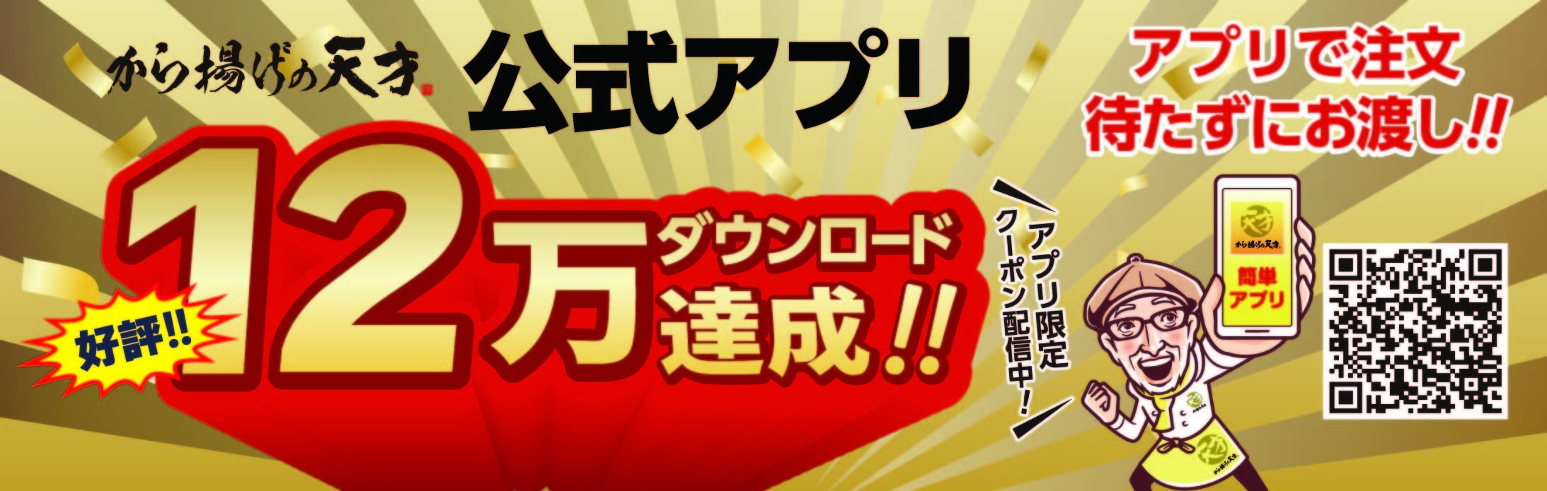「から揚げの天才」公式アプリが遂に登場!遂に12万ダウンロード達成!