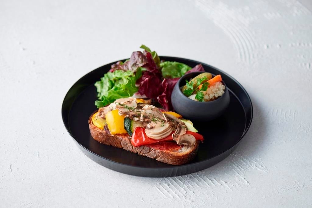 そして、フードには、アンチョビバターを塗ったカンパーニュに、ローストした彩り野菜とたっぷりのマッシュルームをのせたオープンサンド「マッシュルームと彩り野菜のアンチョビバターサンド」など、素材や彩りにこだわった限定メニューをご用意しました。また、感度の高い大人たちが集う二子玉川エリアでのオープンに際し、元トップモデルで現在はパーソナルトレーナー兼栄養士として活躍するオルガ・アクノバ氏と開発した、美と健康を意識したフードメニューも。