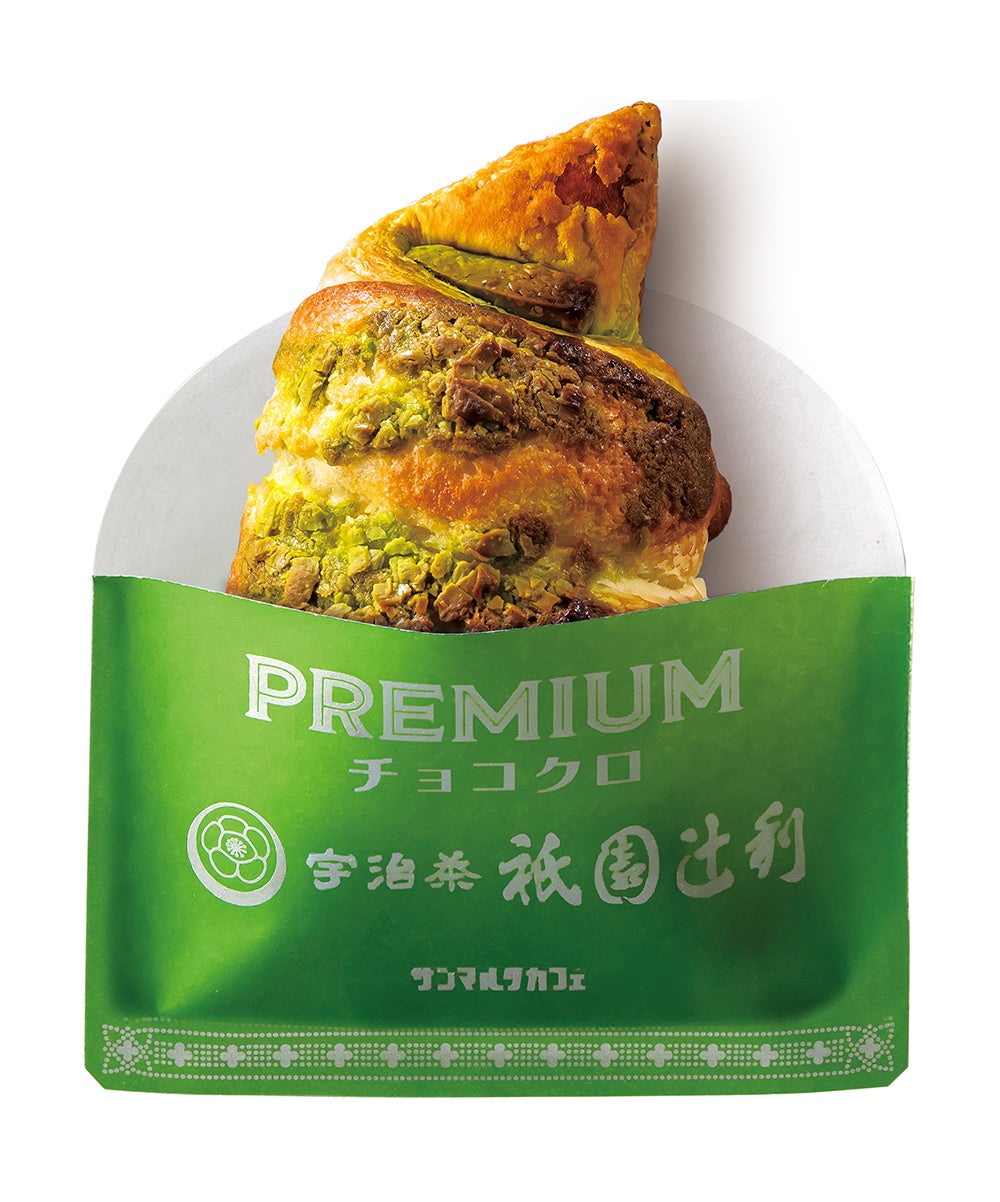 サンマルクカフェの代表商品「チョコクロ」と、濃厚で香り高く風味豊かな祇園辻利「宇治抹茶」が絶妙なハーモニーを奏でる一品。中に包み込んでいるチョコレートにも宇治抹茶が練り込まれ、上品な甘さと豊かな味わいが口の中に広がります。