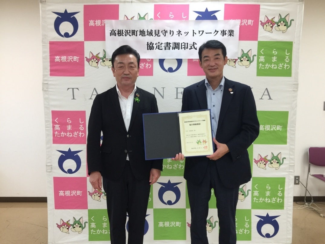 栃木県塩谷郡高根沢町(以下、「高根沢町」)とワタミ株式会社(本社:東京都大田区、代表取締役社:渡邉 美樹、以下「ワタミ」)は、本日7月21日、「高根沢町地域見守りネットワーク事業協定」を締結し、締結式を行いましたので、お知らせいたします。高根沢町では、地域住民が住み慣れた地域で安心して暮らし続けられるように、宅配や個人宅を訪問する事業者や福祉事業を行なう団体等と連携する、高根沢町地域見守りネットワーク事業を推進しています。ワタミは、全国各地の市区町村と地域見守り協定などを結び連携を深めることで、SDGs目標「11.住み続けられるまちづくりを」への取り組みを広げてまいります。