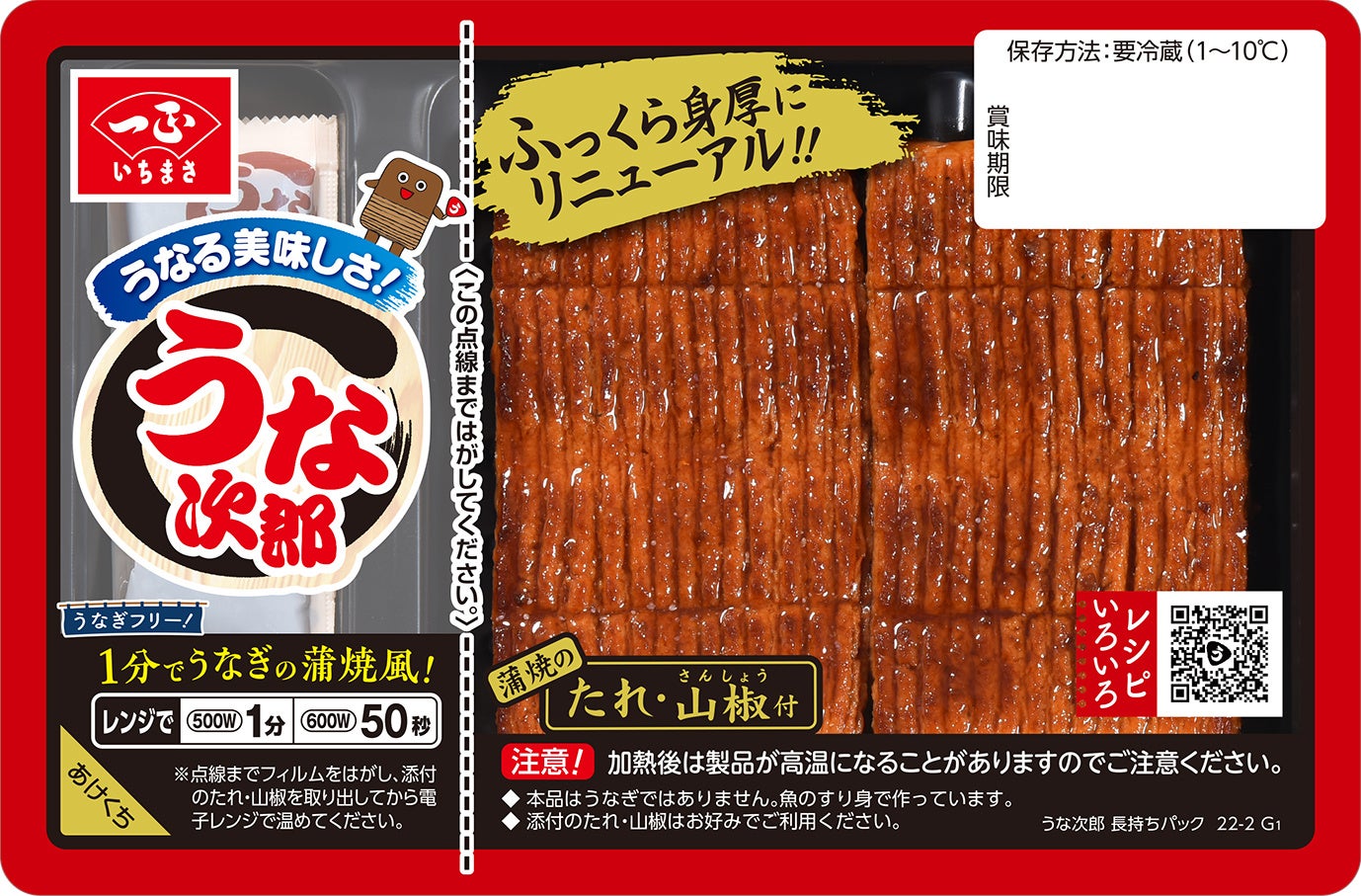 「うなる美味しさ うな次郎」は電子レンジで1分あたためるだけでうなぎの蒲焼風をお楽しみいただける、魚のすり身で作った蒲焼風かまぼこです。今年は、ふっくら身厚にリニューアル!またパッケージデザインを一新。より鮮度感や風味の豊かさが伝わるデザインに変更しました。7月26日は、う(0)な(7)じ(2)ろ(6)うの語呂合わせからうな次郎の日に制定されています。今年の夏の土用の丑の日(7月23日、8月4日)はうな次郎でスタミナをつけてみませんか?