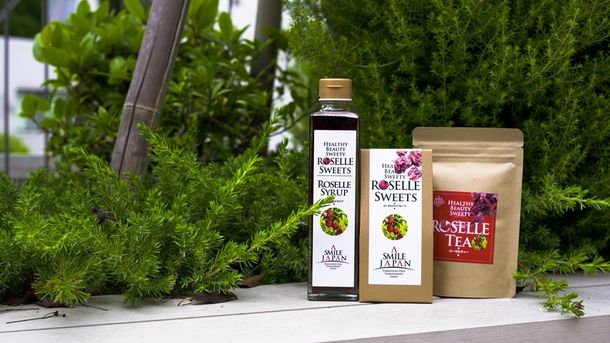 ローゼル商品(左からシロップ・ドライローゼル・ティー)