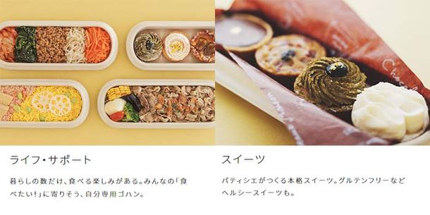「考えない平日食、愉しめる食事」をコンセプトにレンジで温めるだけで食べられる冷凍ワンプレートや惣菜・ミールキット等を各種取り揃えており、その中から1人1人に本当に合った商品を選んで頂けます。また、上記メニューと一緒に愉しんで頂けるビールやワイン等の飲料や冷凍デザート・アイスクリーム等の商品も充実しています。