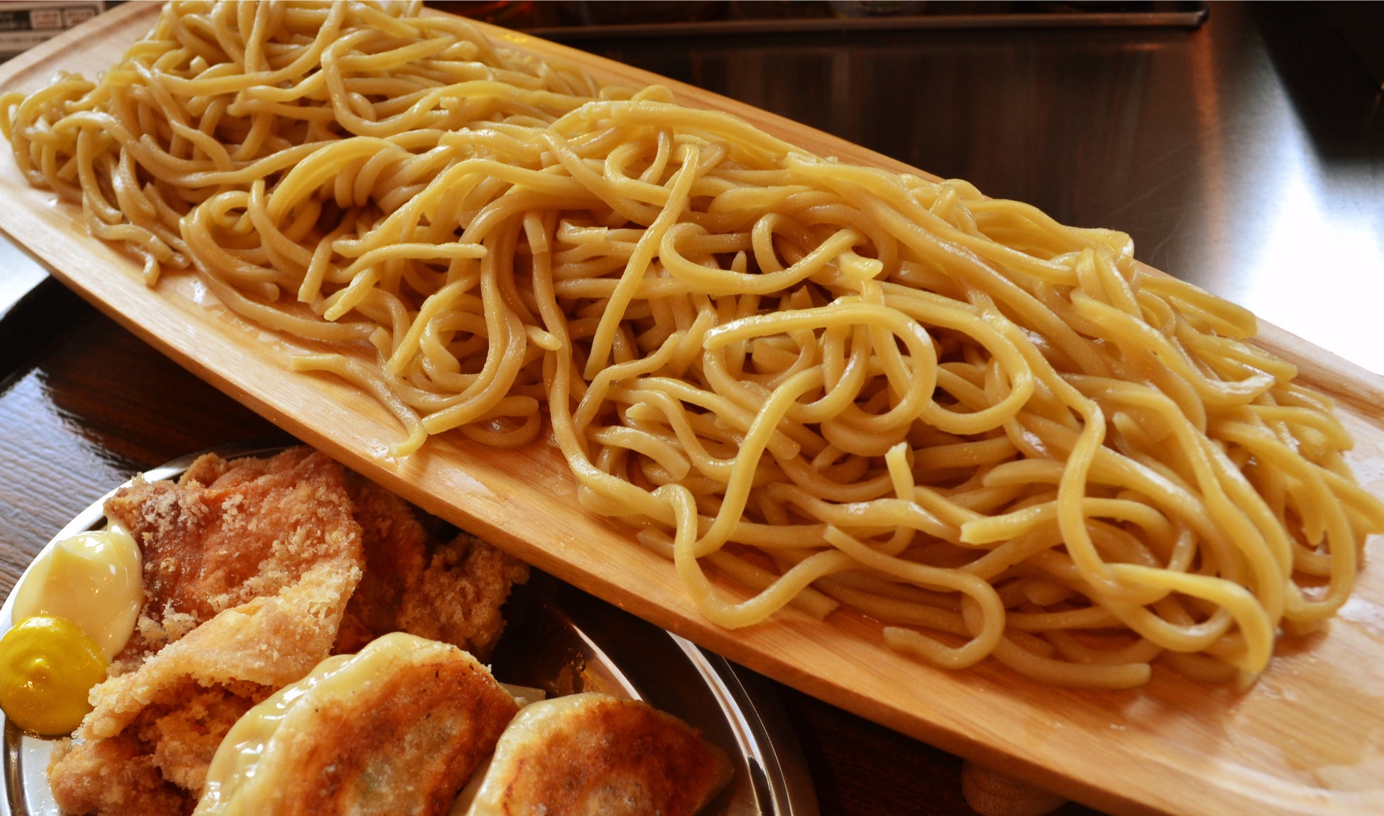 「小麦そば」は北海道産小麦のみを使用して作った、もちもち食感と芳醇な香りが楽しめるオリジナル麺です。「SAPPORO餃子製造所」の看板商品である餃子の厚めでもちもちとした皮と同様、たんぱく質豊富で伸びと弾力のある北海道産小麦粉「春よ恋」を使用しております。熟練の職人が試行錯誤を繰り返し、同じく北海道産の小麦粉「LA LUNE(ラ・リュンヌ)」をブレンドすることで、口当たりが滑らかでスープが良く絡む麺が完成しました。