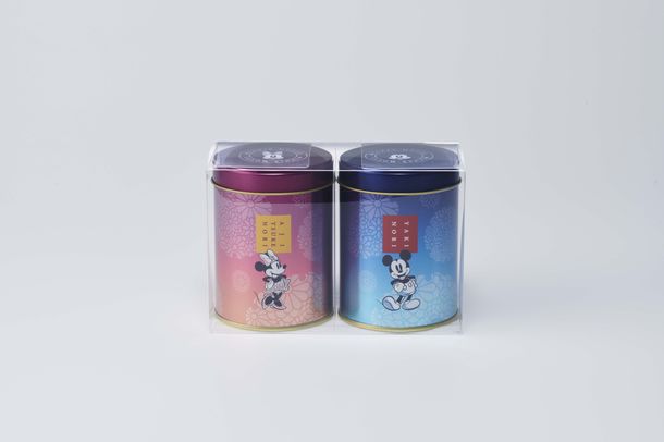 華やかな青とピンクの缶にマーガレットをイメージした花をあしらい、ミッキーマウスとミニーマウスをデザインした、夏にぴったりのスタイリッシュで可愛いパッケージとなっております。