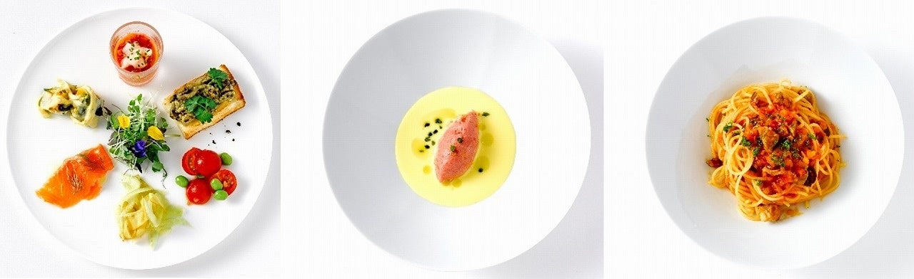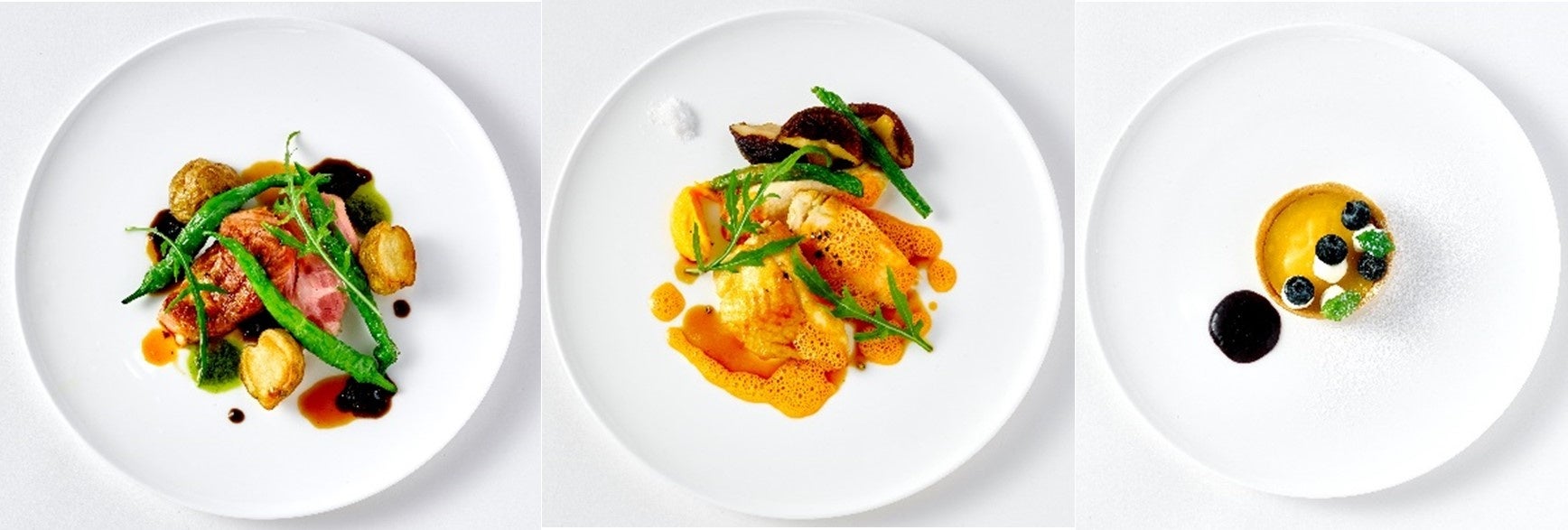 音羽和紀シェフが開発から携わった「伊達鶏」や栃木県のブランド魚「ヤシオマス」、栃木県産の野菜を使用したスペシェリテが登場します。現在Otowa Restaurantの厨房を任せられている長男・元氏は父と同じ「アラン・シャペル」で修業経験もあり、今回のメニュー監修を担当していいただきました。次男・創氏による「とうもろこしのスープとトマトのソルベ」も提供いたします。創氏はミシュランガイド東京2017年より4年連続で一つ星獲得、今回提供するスープは料理人コンペティション「RED U-35」で準グランプリ受賞時に披露したものです。栃木から直送した食材をはじめとした繊細で豊かな味をぜひご堪能ください。