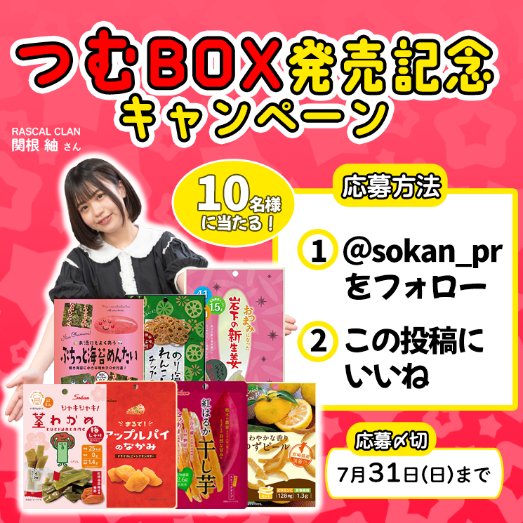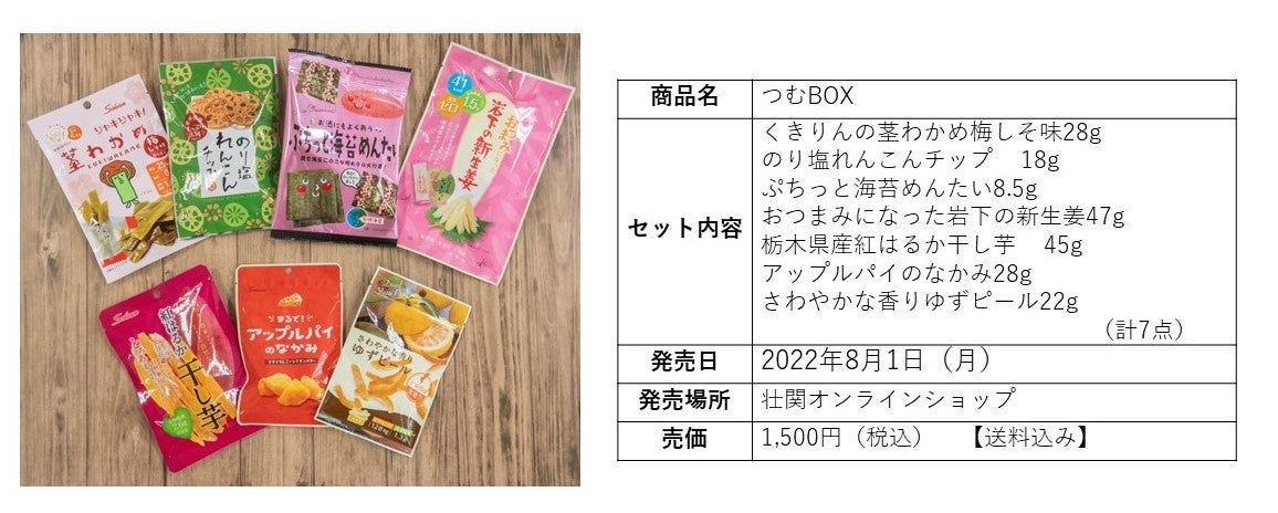 株式会社壮関(本社:栃木県矢板市 代表取締役社長:板山 健一)は、アイドルグループ『RASUCAL CLAN』の関根紬さんおすすめ商品詰め合わせ『つむBOX』を2022年8月1日(月)より壮関オンラインショップ(https://sokan.shop/)にて発売いたします。