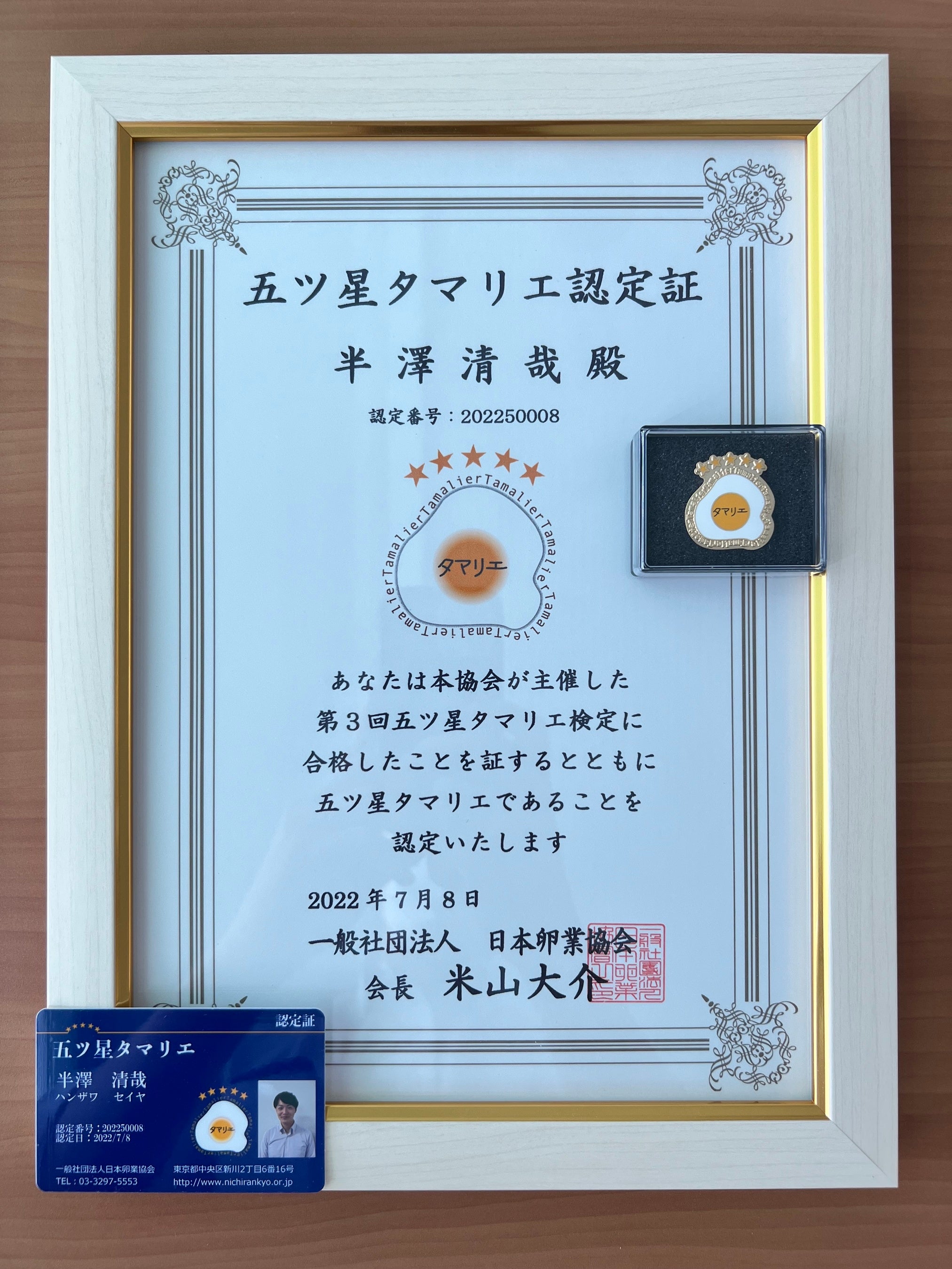 当社の半澤が取得した『五ツ星タマリエ』は、卵に関する総合的な知識があり、卵のプロとして認められ、