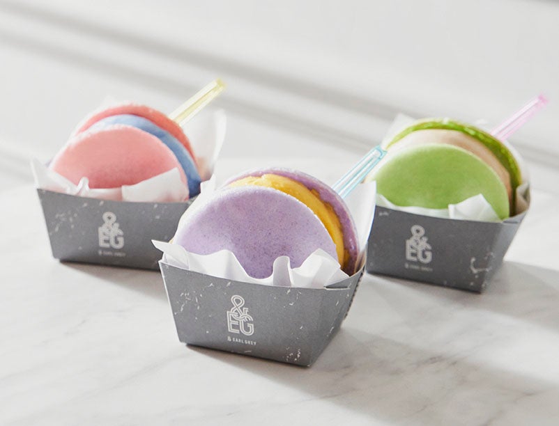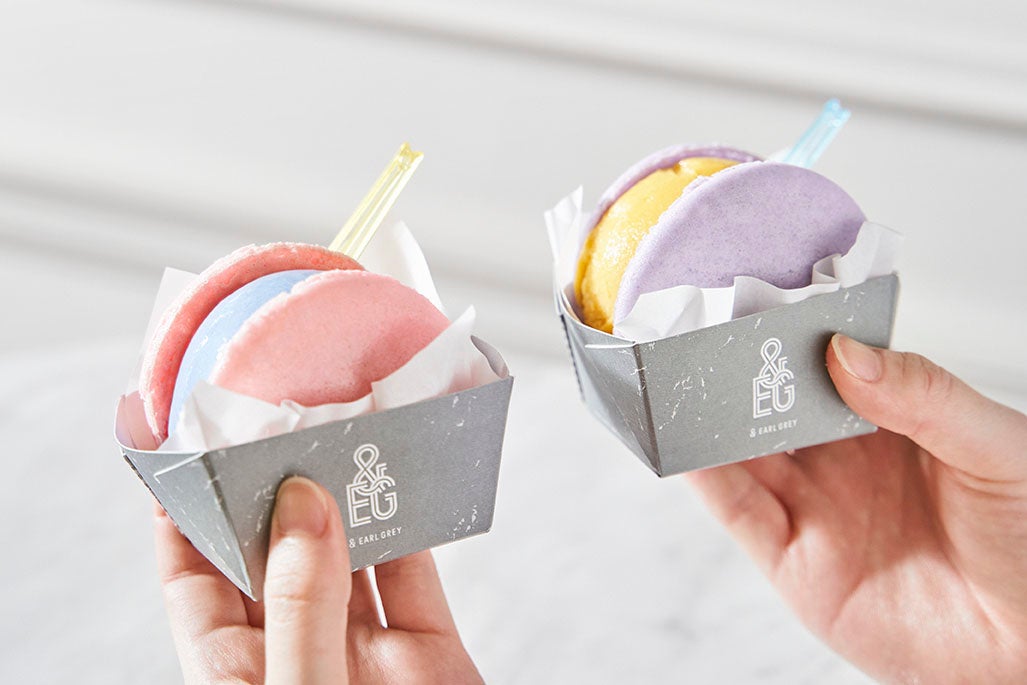 香るティージェラートを色とりどりのマカロンでかわいく挟んだ