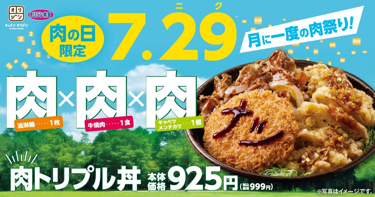 弁当・惣菜専門店「オリジン弁当」「キッチンオリジン」を展開しているイオングループのオリジン東秀株式会社(本社:東京都調布市/代表:沢村 弘也)は、7月29日(金)10時より、「肉トリプル丼」を期間限定で販売いたします。