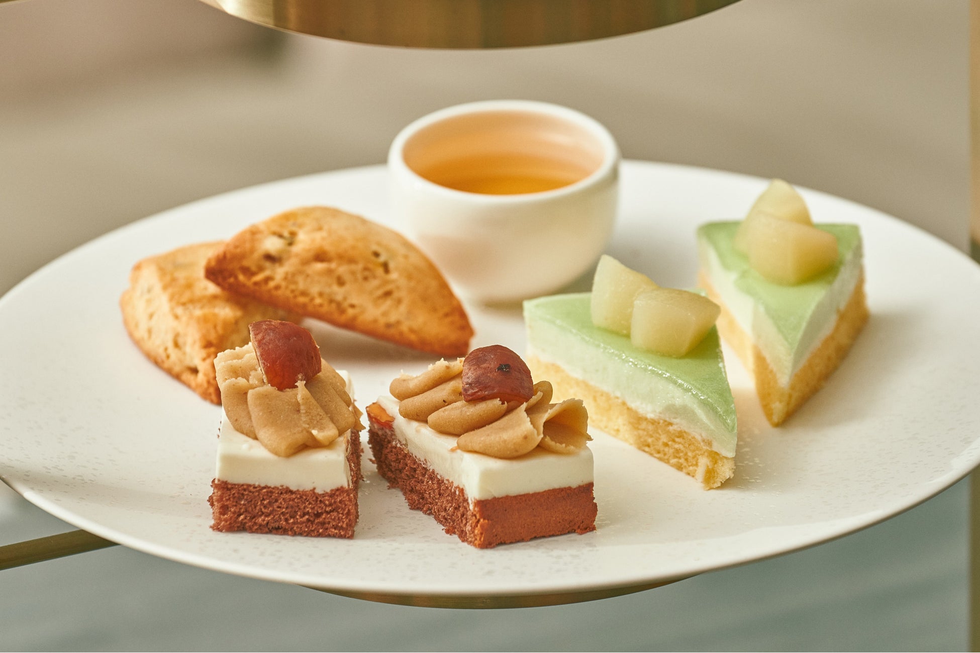 和栗、紫芋、カボチャの3種類のモンブランをメインに、洋梨、シャインマスカットなど秋の味覚をふんだんに使用したアフタヌーンティーをご用意しました。