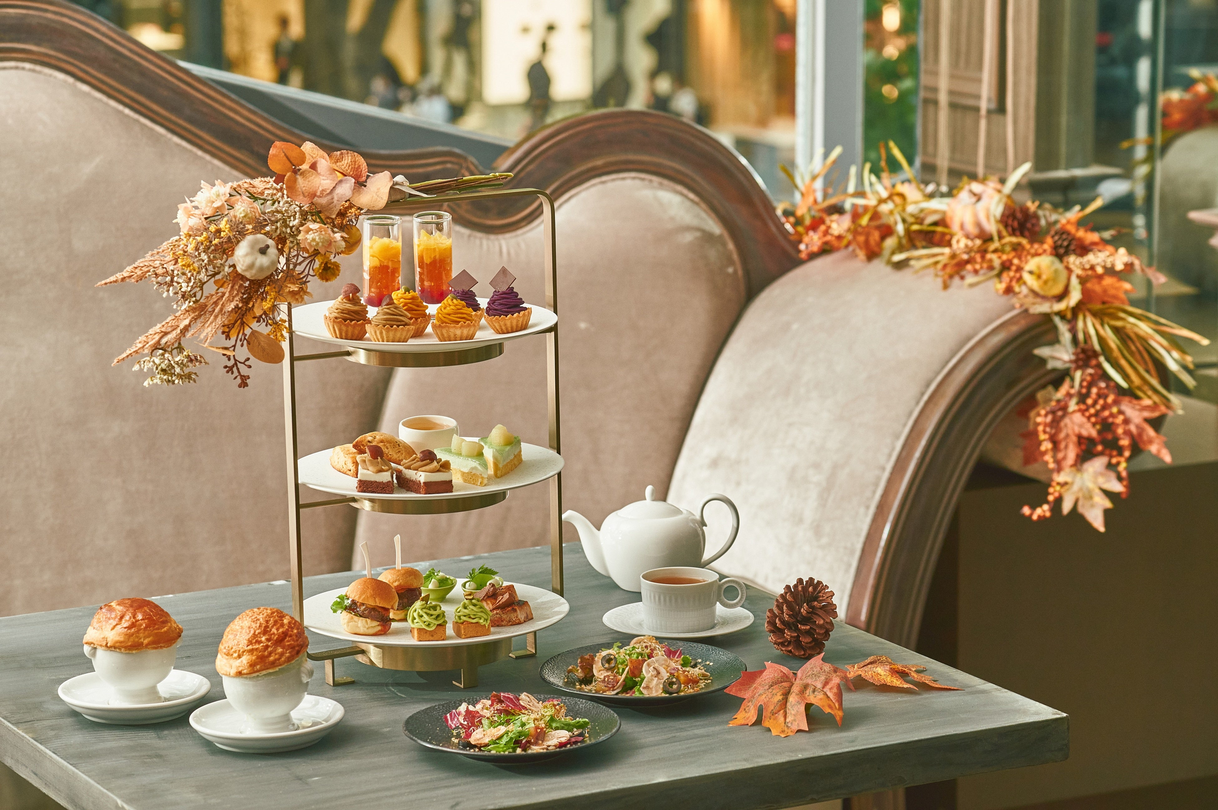 和栗、紫芋、カボチャの3種類のモンブランをメインに、洋梨、シャインマスカットなど秋の味覚をふんだんに使用したアフタヌーンティーをご用意しました。