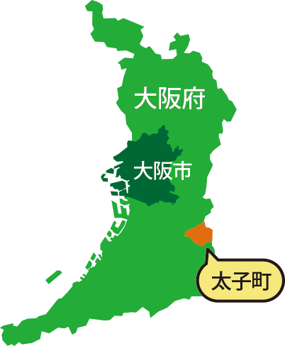 太子町は、大阪府の東南部に位置し、富田林市・河南町・羽曳野市に接し、東には金剛・葛城の山々を介する豊かな緑と歴史につつまれたまちです。まちの東にらくだの背のような美しい姿でそびえている「二上山」は、町のシンボルともいえる山です。