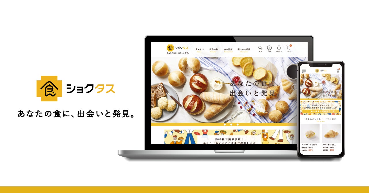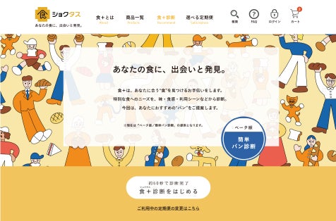 食+(ショクタス)は、お客様一人ひとりに合う食を見つけるお手伝いをします。味・食感・利用シーンなどに関する質問から食の好みを診断し、おすすめの“食”をご提案する診断機能「食+診断」を搭載しております。プレオープン時はベータ版として、おすすめのパンをご提案する「簡単パン診断」をご用意しております。