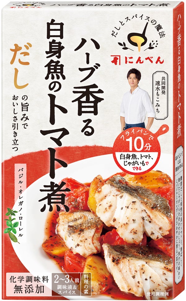株式会社にんべん(東京都中央区、代表取締役社長 髙津伊兵衛)は、俳優速水もこみち氏と共同開発している「だしとスパイスの魔法」シリーズから、「ハーブ香る白身魚のトマト煮」を 2022年 9 月 1日(木)より全国で新発売いたします。