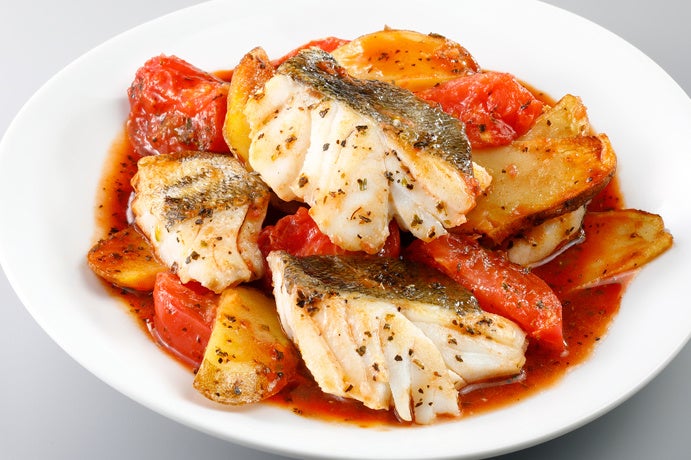 使用する食材は白身魚とトマト、じゃがいもだけ!鰹節だしと相性の良いトマトを使用した調味液と、さわやかな香りが特徴のスパイスとともに蒸し焼きにすることで、バジルとオレガノが香るトマト煮ができます。
