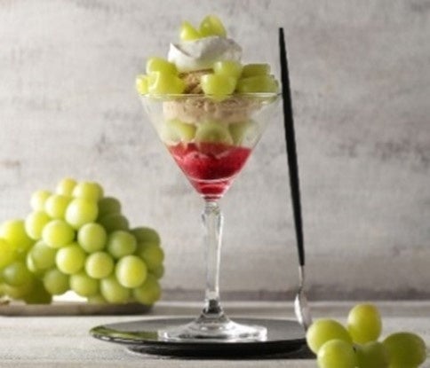 涼しげなガラスの器に、ベリーソース、スポンジケーキでつくるラスク、紅茶のアイスクリーム、自家製のマスカルポーネクリームを重ね、気品あふれるさわやかな香りのうきは産シャインマスカットを贅沢にたっぷりとトッピングしました。店舗で仕込むふわっと軽やかなマスカルポーネクリームと、紅茶のアイスクリームが、うきは産シャインマスカットを引き立てます。サクッとした食感のラスクと、ベリーソースの酸味がアクセント。香り高く、清々しい味わいの極上パフェを、ぜひお召し上がりください。