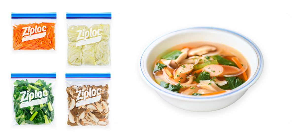 3種を「ジップロック®フリーザーバッグ(Ⅿ)」 に入れ、なるべく空気を抜いてジッパーを閉め、