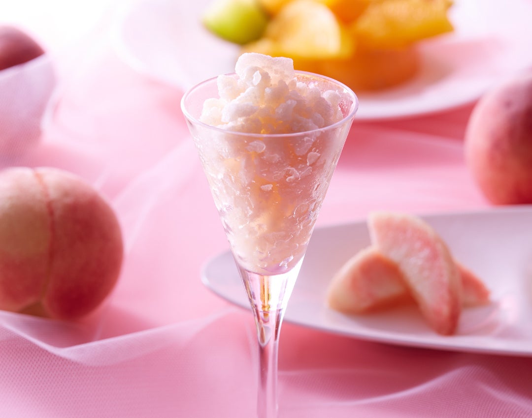 平日4:30pm以降は限定メニューとして【桃のグラニテ】をご提供します。みずみずしい桃の味わいを冷菓としてお楽しみいただけます。