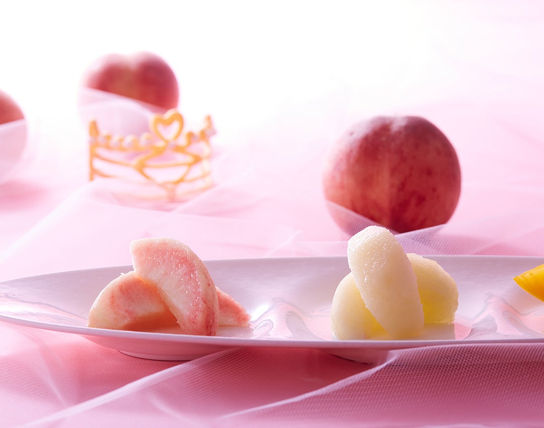 スイートな香りできめ細やかな口当たりの桃を、8月のカットフルーツメニューとして、毎日ご提供いたします。ご提供する桃は、山梨県産、長野県産、福島県産、岡山県産、小布施町産、また黄金桃などの品種も入荷予定です。(入荷状況により変更になる場合がございます。)中でも岡山県産桃の特徴としては、収穫する最後まで袋をかけておくことで、太陽の光を直接浴びず、透き通った白色、滑らかな果肉、芳醇な香りの桃になります。またフルーツの名産地として知られる長野県小布施町の桃は、内陸性気候で昼と夜の温度差が大きいことや、水はけが良いことで果物がおいしく栽培できる絶好の環境で育っています。