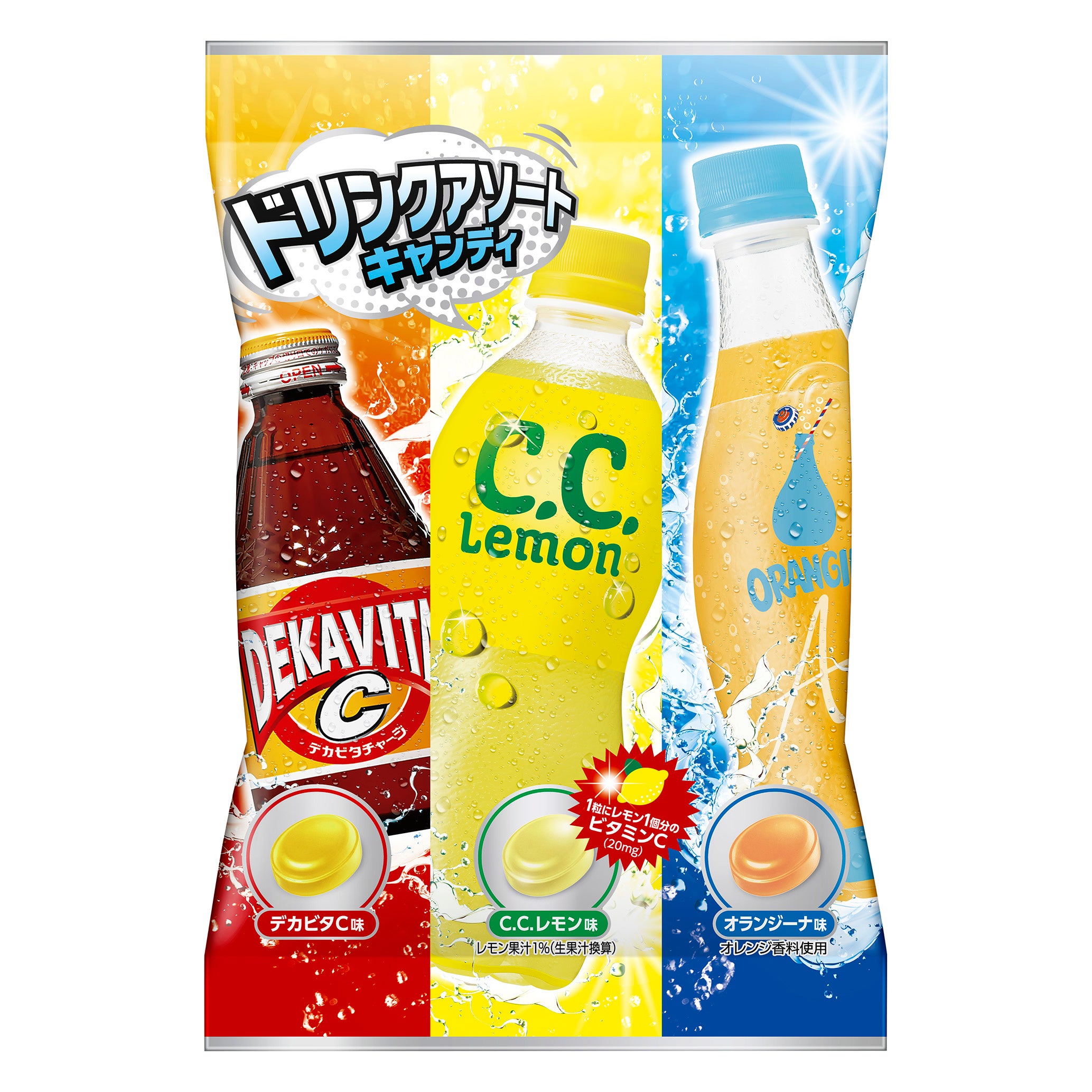 - 「デカビタC」「C.C.レモン」「オランジーナ」の3種類の味わいが楽しめるアソートタイプ。