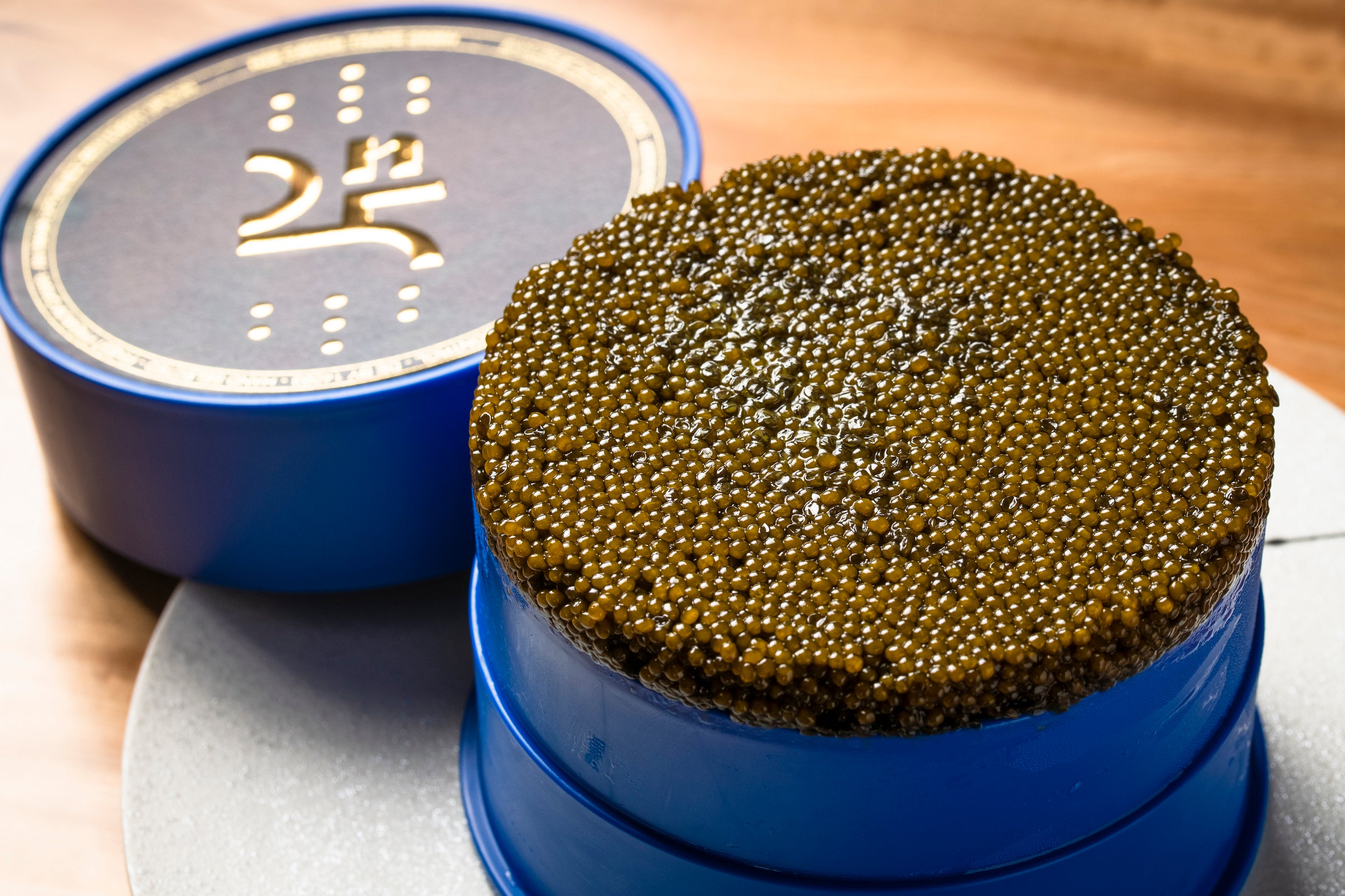 目の前でお焼きする一口30gのシャトーブリアンに直径約20cmの専用容器に入ったn25キャビアを目の前で盛り付てご提供する一品は、まさに『神の一口』と言うに相応しい圧倒感があります。