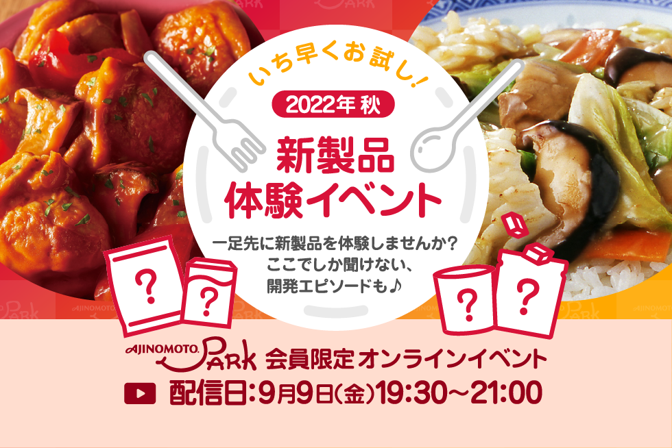 「⾷べる楽しさを、もっと。」をコンセプトに、様々な⾷体験をお届けする「AJINOMOTO PARK」。新製品をご紹介するオンラインイベント第三弾「いち早くお試し!2022年秋の新製品体験イベント」の開催がついに決定!