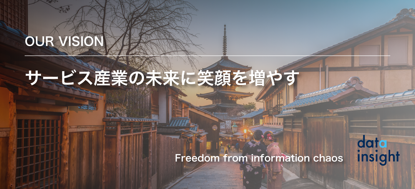 私たちデータインサイトは、飲食・観光・サービス業における情報リテラシー格差をなくすことで、事業者・働く人・お客さんの三方良しの世界をつくり、人々の生活をより豊かにしていくことを目指します。