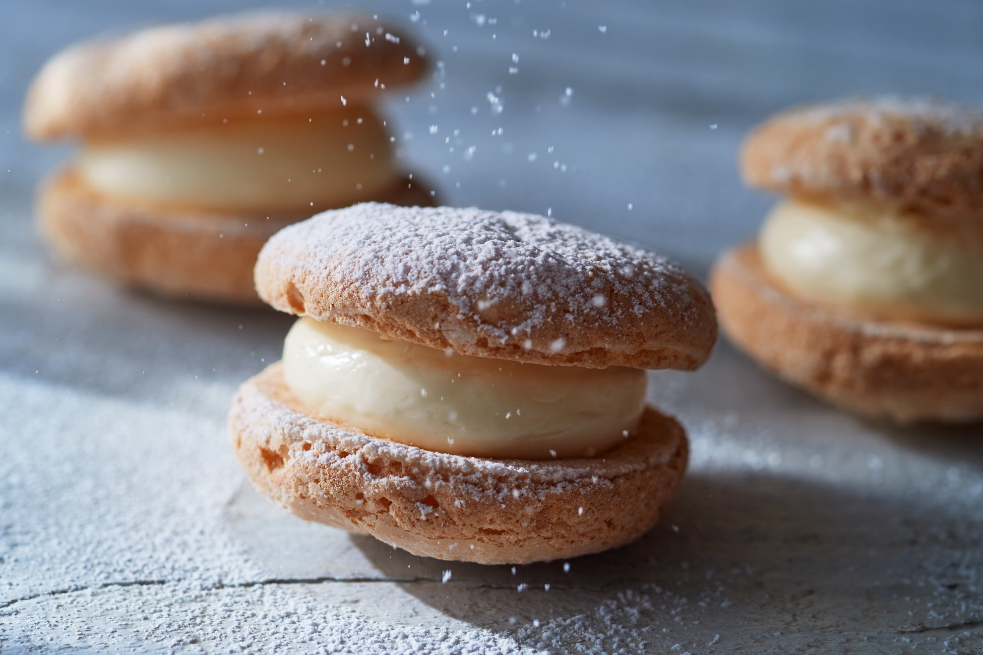 北海道十勝産のジャージーミルクで作った、濃厚なジャージーミルクジャムをクリームに混ぜ込み、ふんわりと焼き上げたブッセ生地に挟みました。口いっぱいにミルクの優しい甘さが広がります。