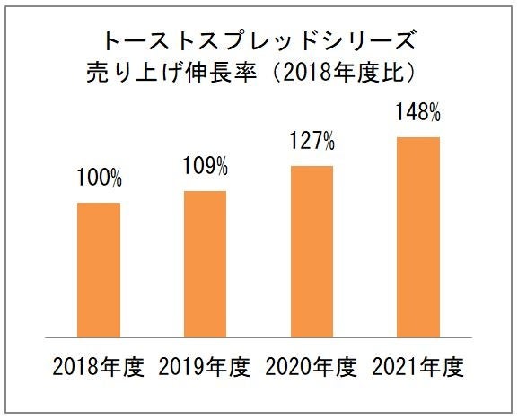 食パンを食べる機会が増えた※ことにより、手軽に家で楽しめる食パンのアレンジメニューなどが話題になっています。そのような背景の中「ヴェルデ トーストスプレッド」シリーズの売上も伸長しています。