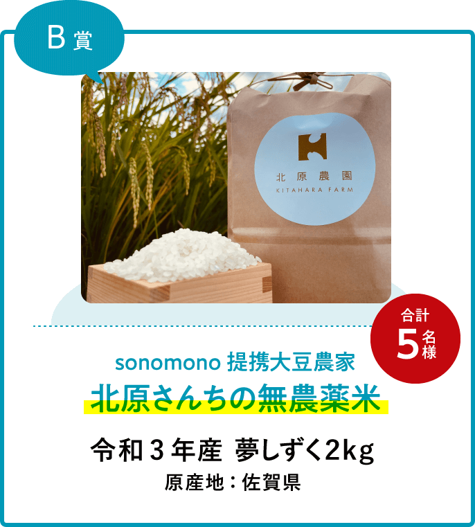 \賞品2/ sonomono提携大豆農家「北原さんちの無農薬米」(合計5名様)