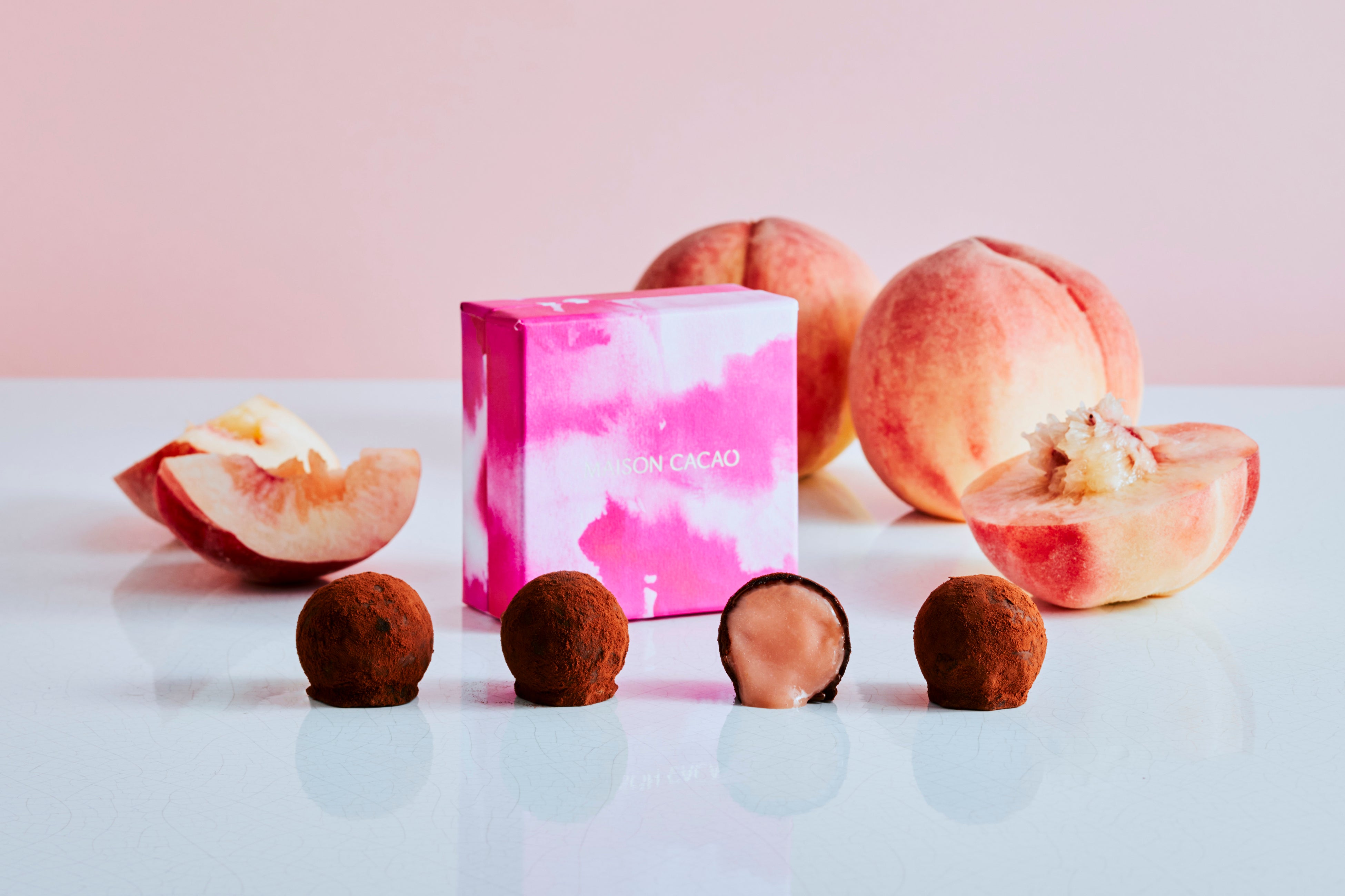 メゾンカカオの新定番品「アロマ生トリュフ」の夏限定フレーバー1つ目は白桃です。