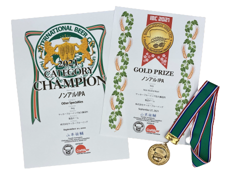 「正気のサタン」は世界五大ビール品評会の一つである「インターナショナル・ビアカップ2021」の「ノンアルコール部門」で金賞を受賞しました。さらに金賞受賞の銘柄の中からまったく新しい取り組みをしている部門「アザースペシャリティ」カテゴリーでカテゴリーチャンピオンを獲得し、特に優れたビールとして認められました。