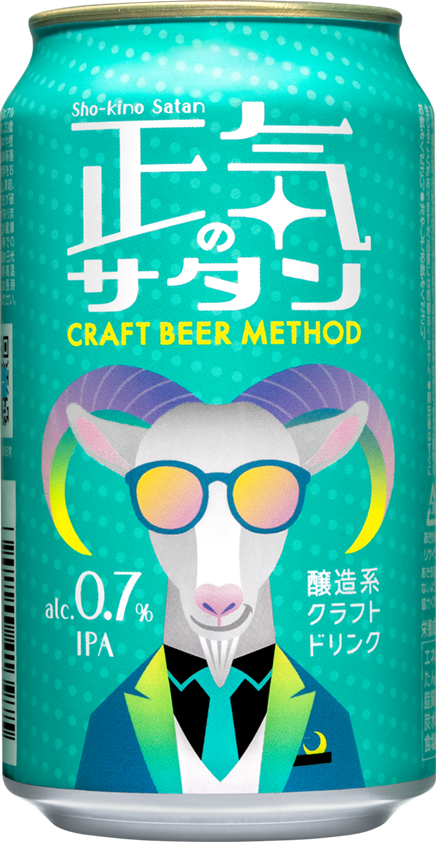 「正気のサタン」というネーミングでは、0.7%の低アルコールであることを「正気」という言葉で表現しています。「サタン」は「悪魔的な美味しさ」「やみつき」など、常軌を逸しておいしいときに使われる表現から着想しました。「正気」と「サタン」を掛け合わせることで、0.7%の低アルコールでありながらお酒を飲んだときのような幸福感と、少し先の未来(食後・翌日)の充実感を両立できることを表現しています。パッケージにはサタンを描く際によく使用される「ヤギ」をモチーフに、サングラスをかけお気に入りのスーツに身を包んだゴキゲンに生活を楽しむキャラクターをデザインしました。パステルなカラーリングは製品の軽やかさを表現しています。