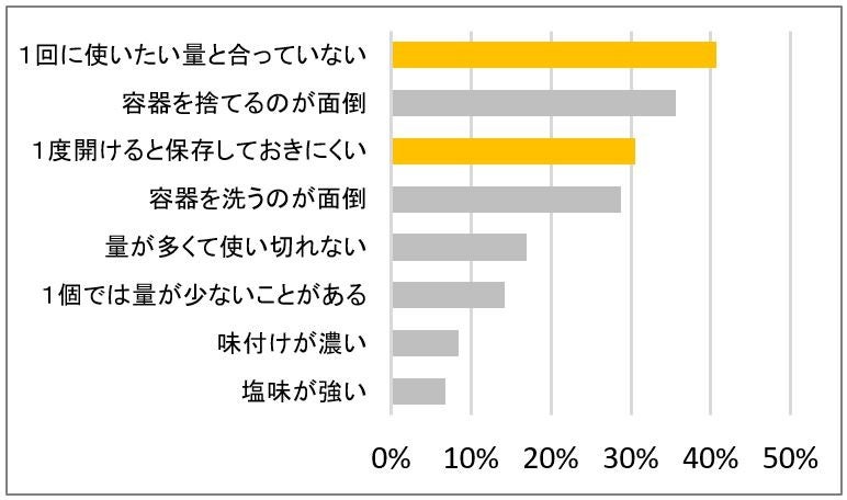洋風ソース市場はソース状で缶形態の商品が多く、「使い切れない」「開封後に保存ができない」等の形態の「不」が利用シーン拡大を妨げている要因となっています。