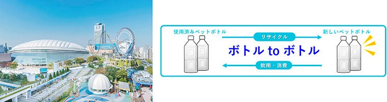 サントリー食品インターナショナル株式会社は、株式会社東京ドーム(以下、東京ドーム)と協働し、東京ドームシティ全域に集められた使用済みペットボトルを回収して新たなペットボトルに生まれ変わらせる「ボトルtoボトル」水平リサイクル※1を8月1日(月)より開始します。