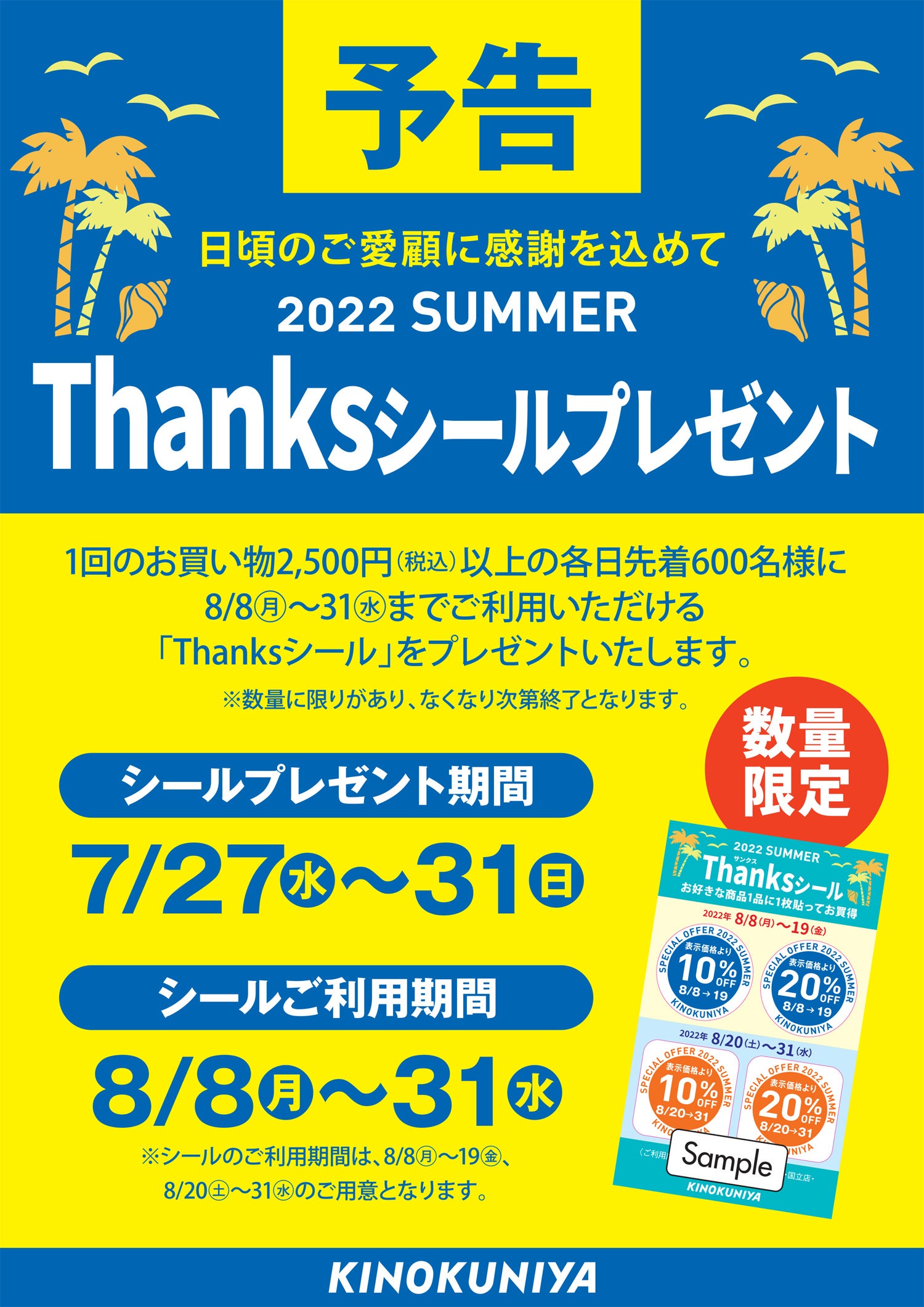 Thanksシール利用期間:2022年8月 8日(月)~31日(水) 24日間