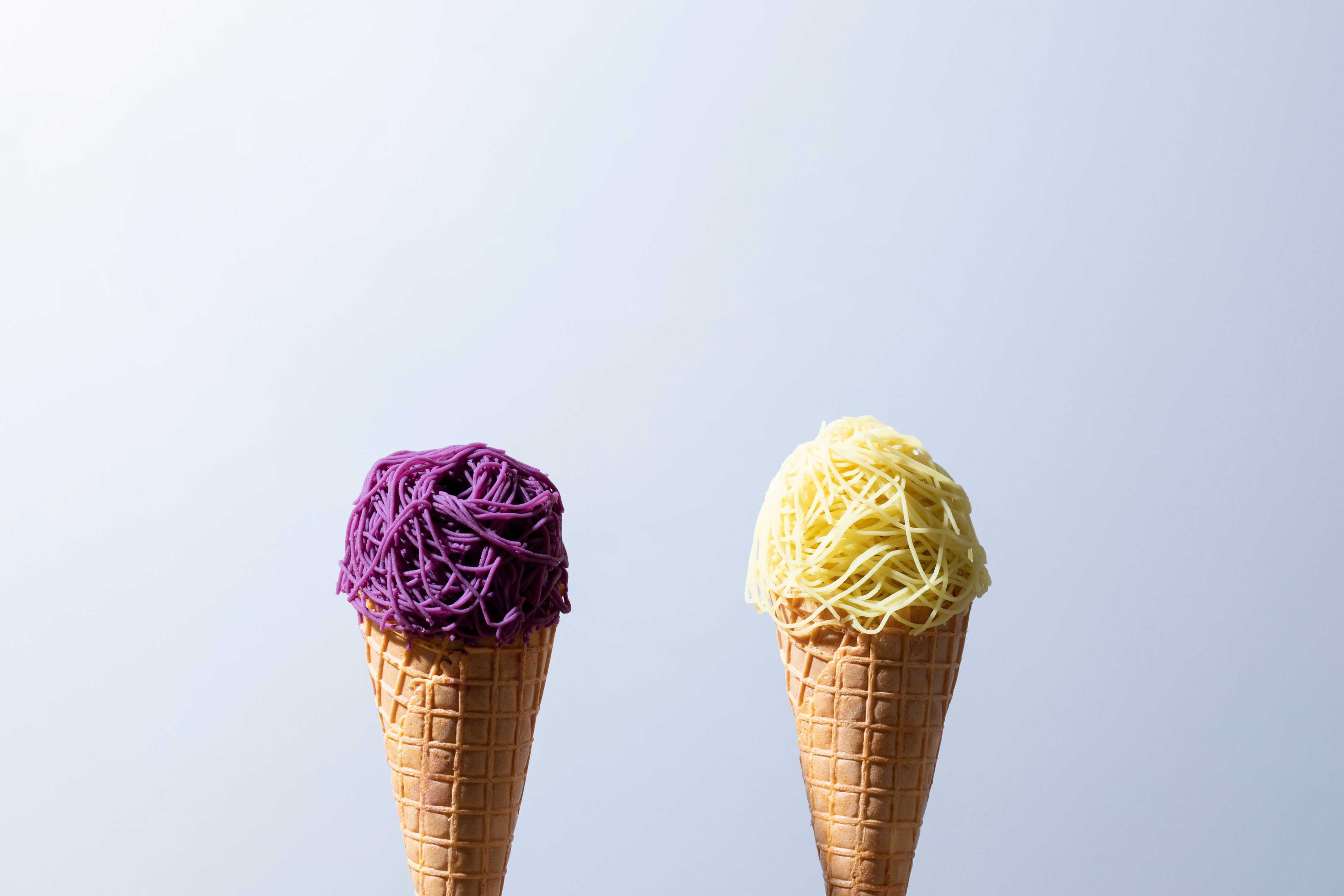 細さ1mmのさつまいもペーストをバニラアイスの上にたっぷりかけた、浅草観光のお供にもぴったりな、食べ歩きさつまいもスイーツです。味わいは茨城県産の紅あずまと、鹿児島県産の綾紫芋の2種類からお選びいただけます。