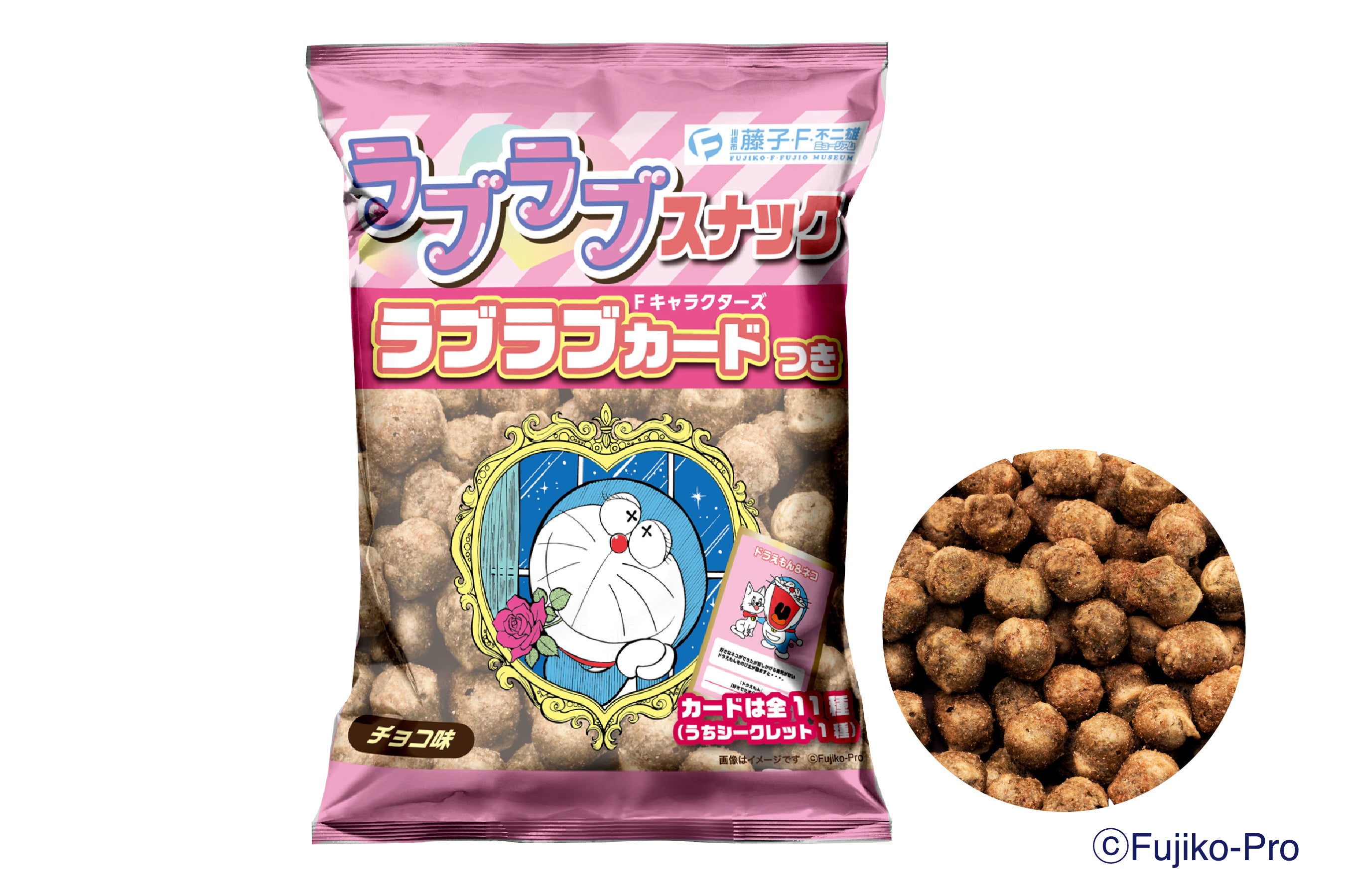 F作品に登場するラブラブなシーンのカードがついた、チョコレート味のスナックが新発売!