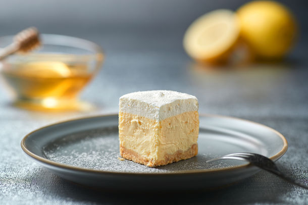 秋田屋本店独自のはちみつ「クリアハニー」を使用することで、滑らかなくちどけを実現。最上部には粉雪のような「ハニーパウダー」が降りかかり、解凍が進むにつれ、ハニーパウダーが溶けだしクリームにしみ込みます。