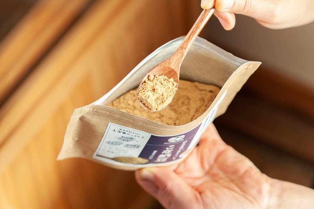 「こな納⾖」は、納⾖が持つ有⽤成分を⽣かすため、フリーズドライ製法で粉末化。納⾖の栄養価はそのままに、⽣きたまま腸まで届く納⾖菌も効率的に摂ることができます。佐賀県江北町有機研究会で栽培された特別な⼤⾖(遺伝⼦組み換えでない、化学農薬や化学肥料不使⽤で栽培)を厳選してつくった納⾖粉末100%で完全無添加。